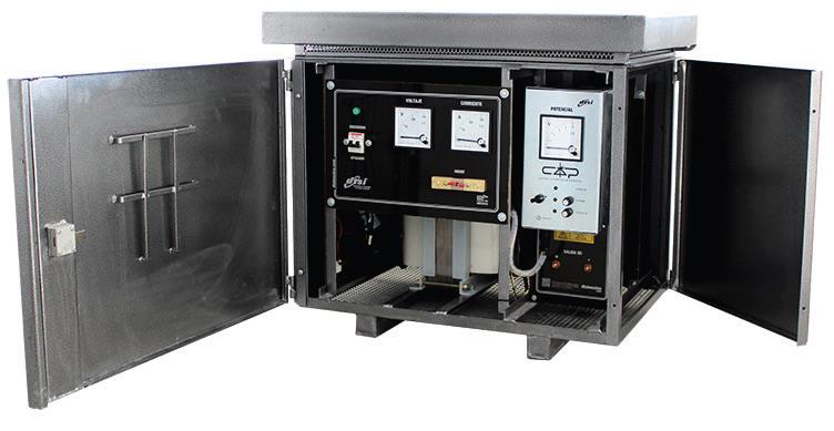 Línea de equipos rectificadores automáticos DTSI México para protección catódica modelo RG2, enfriados por conexión natural. Las aplicaciones más comunes son: tuberías, tanques de almacenamiento y otras locaciones no peligrosas donde se requiere suministro de energía DC.