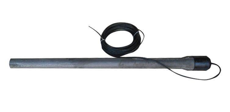 Este ánodo galvánico está conectado a las estructuras de acero para prevenir o retrasar el efecto de la corrosión. El ánodo de magnesio tiene alta actividad química, su potencial es negativo y su tensión es alta. Una vez en el agua, el metal del ánodo se oxida, impidiendo que la corrosión ataque al metal protegido.