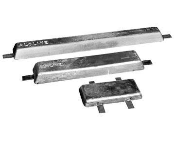Estos ánodos son apropiados para su utilización como ánodos de sacrificio en aguas salobres y en agua de mar. Pilotes de duques de alba, pilotes de embarcaderos, condensadores de refrigeración con agua de mar en Centrales Eléctricas, interior de tuberías de gran diámetro con agua de mar, fondos de tanques de crudo con agua de mar, etc.